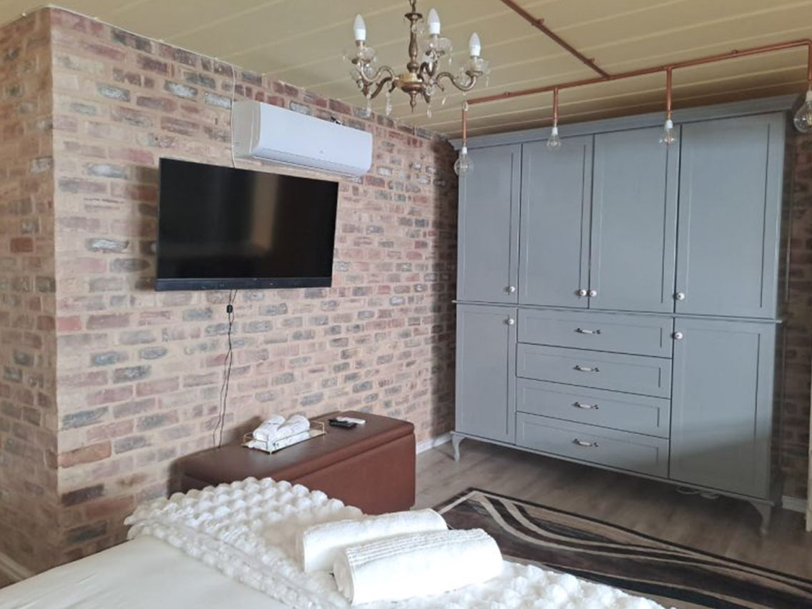 This room is spacious, luxurious with a beautiful view of the pool and the Vaal river. The bathroom has a his and hers basin, his and hers shower and a jet bathtub.